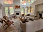On entry, the great room is stylish & sophisticated, yet warm & welcoming, with double volume ceilings, walls of windows, loads of natural light, and imposing views of Sedona’s vibrant red rocks – a comfortable space to gather with friends and family, stream your favorite shows, and create lifelong vacation memories in Sedona.