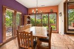 A stone-clad wood-burning fireplace takes center stage in the open plan living area with simple, yet stylish interiors with a homey feel that keeps guests coming back year after year. A fully-fitted kitchen with modern appliances, a breakfast nook, and a dining space make entertaining a breeze. This home stays true to the Sedona way of living with plenty of secluded space to gather outdoors, soak up the sun, share stories around the fire and enjoy a BBQ with friends.