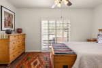 Grasshopper Lane comfortably sleeps 4 guests with an inviting queen bedroom opening onto an outdoor patio with beautiful red rock views and a new sleeper sofa in the living room.