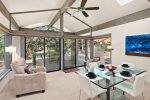 The living space of this 1,822-square-foot home is generous with plenty of areas to gather with friends and family and create lifelong Sedona memories. The living room is bright and airy with large windows and vaulted ceilings and features plenty of comfy seating with a wood-burning fireplace and flat-screen TV. The eat-in kitchen has modern appliances and amenities with a serving hatch through to the dining table with place settings for six. The Sedona lifestyle calls for alfresco dining year-round and your private undercover patio is the perfect spot for morning coffee, sizzling BBQs, sunset drinks, and breathtaking red rock views.