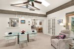 This Fairway Oaks vacation home sleeps 6 guests in one queen bed, 1 full-size bed, and 2 twins in the 3rd bedroom. An ideal and comfortable base for your next Sedona vacation.