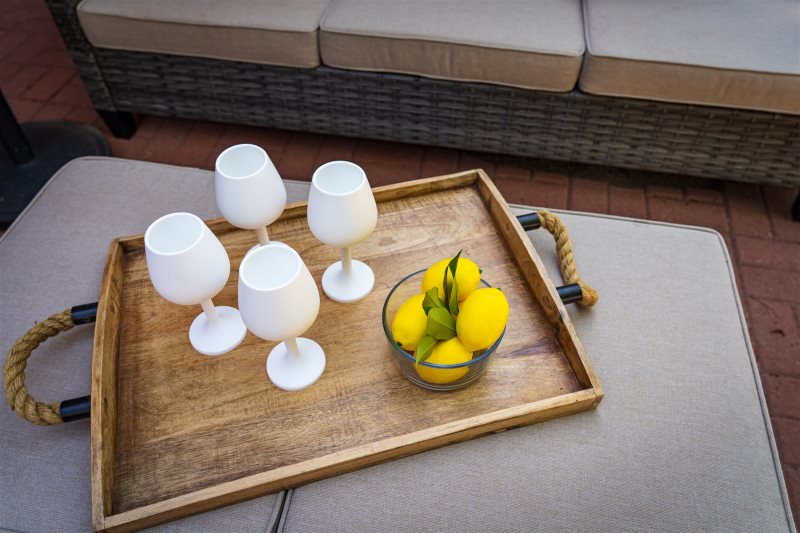 The private, fenced patio at Desert Poppy is your peaceful outdoor hangout – complete with rattan-style furniture, a BBQ grill, and a shade umbrella. It’s the perfect space to sip your morning coffee or wind down after a day of adventures with your pup.