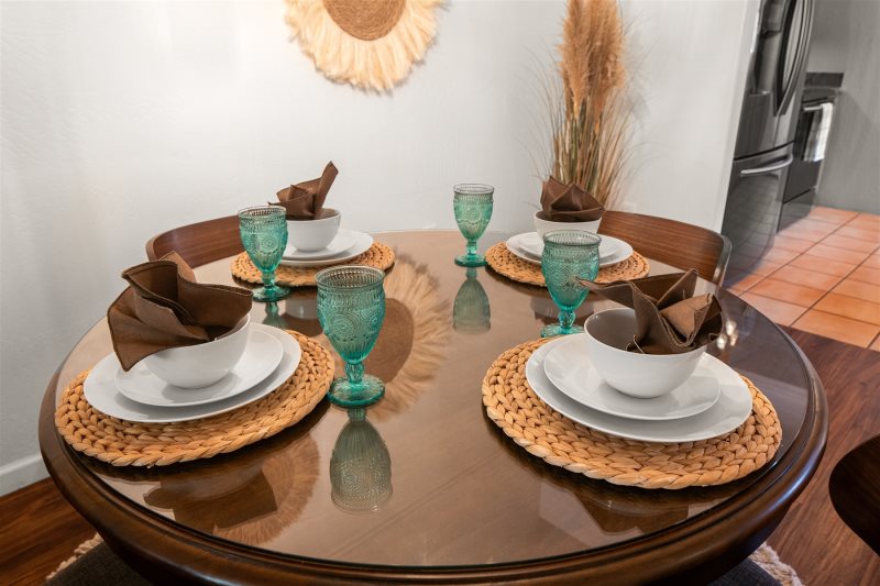 Inside, you’ll find an open-concept living area with a sectional sofa, cozy gas fireplace for the cooler months, and a flat-screen TV for relaxing nights at home. The dining space is perfect for board games, shared meals, and memorable moments and the kitchen is fully stocked, updated, and ready for everything from morning smoothies to sunset tapas.