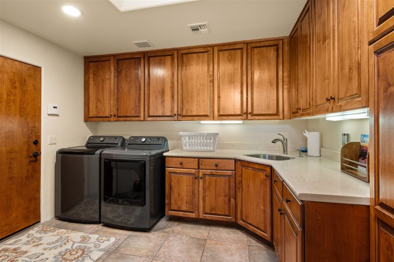 The dining table can comfortably seat 6 with additional seating for 4 at the kitchen island, making it an ideal space for shared meals and memorable moments. The warm wood kitchen is modern and fully equipped, allowing you to make your favorite meals or sample the local flavors of Sedona with ease.