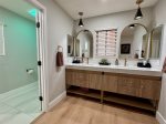 Bathrooms: 2 Full En-Suite Bathrooms with Skylights, Primary Suite has a Walk-In Shower Only, 2nd Bathroom adjoined to the Hallway has a Shower/Tub Combo.