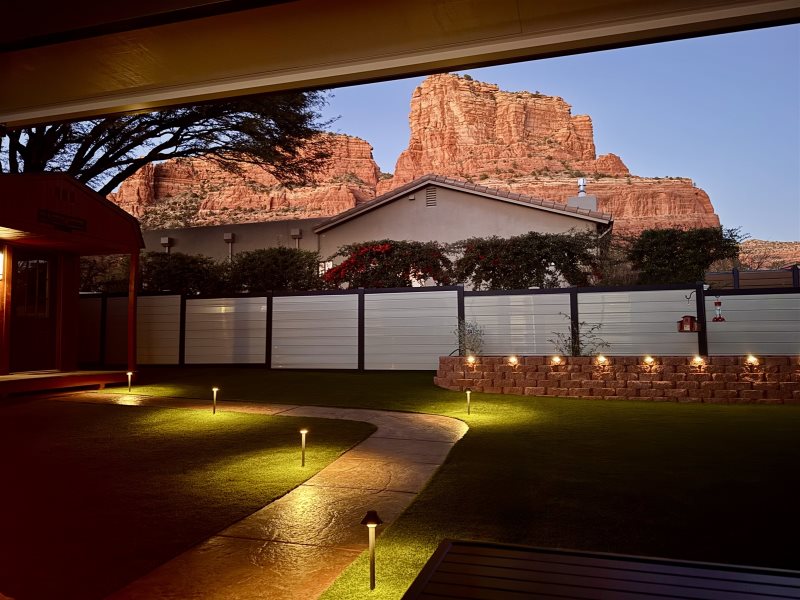 Enjoy your evening cocktail and watch the amazing pink and purple sunsets from the front patio, or bask in Sedona's incredible, famous red rock mountain views from the fully enclosed backyard patio complete with the finest outdoor living: an expanded overhead custom pergola with dark-sky lighting and overhead fans for the summer, plenty of outdoor seating for entertaining, BBQ grill and wine fridge, outdoor firetable for socializing, stargazing, playing games on the large TV or watching your favorite sports team!