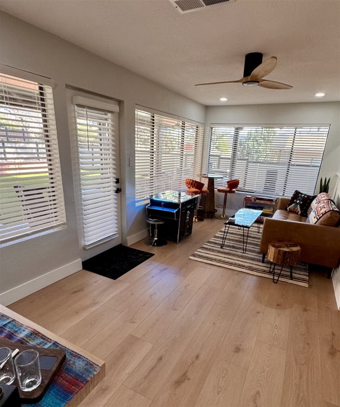 Boasts 2,388 square feet of beautifully appointed designer interiors; classy, southwestern, modern design and open layout with high vaulted ceilings, new luxury vinyl flooring throughout. Fine-quality furniture and decor tastefully chosen by interior designer with Sedona's finest local touches and custom artwork throughout (by accomplished artist, visit www.rachelsantel.com).