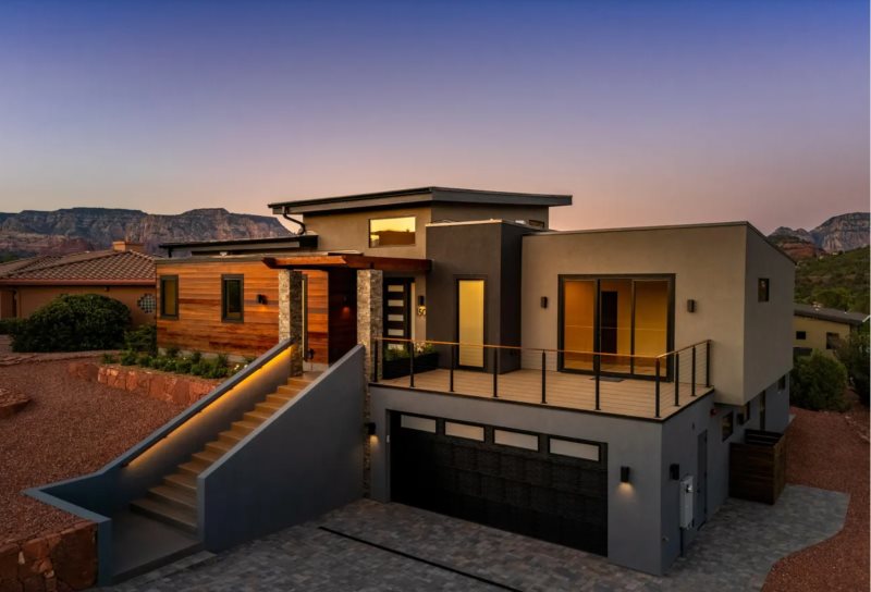 Elevate your vacation living at this luxurious modern retreat overlooking Sedona's famous red rock mountain views in the heart of West Sedona, within minutes of spas, restaurants, activities, shopping, and Sedona’s top trailheads.
